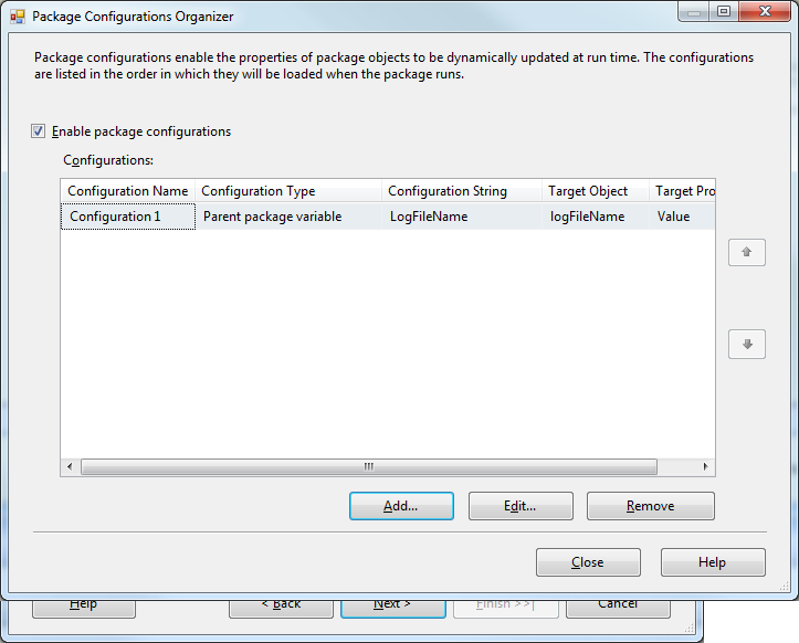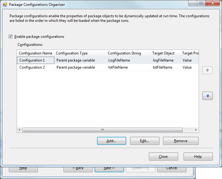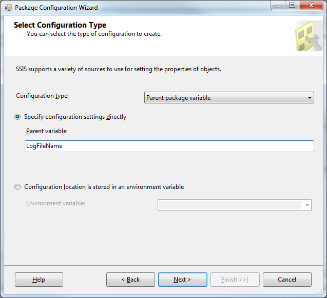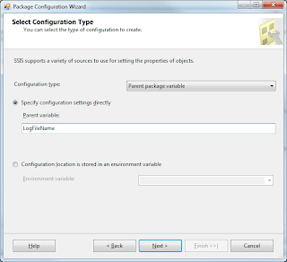 4) click next and change Configuration type to Parent package variable and type a Parent variable