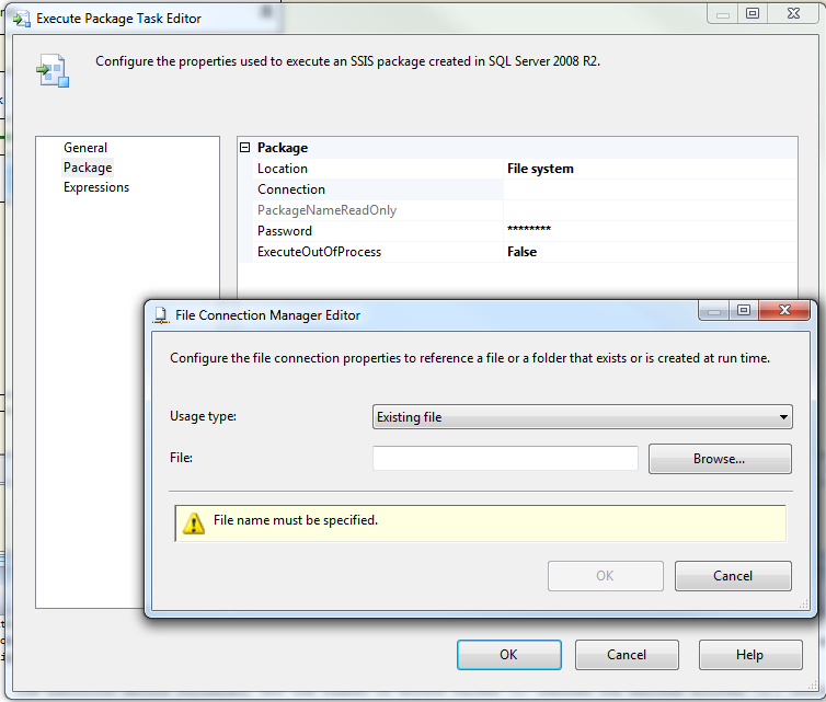 9) go back to parent package and modify Execute Package Task