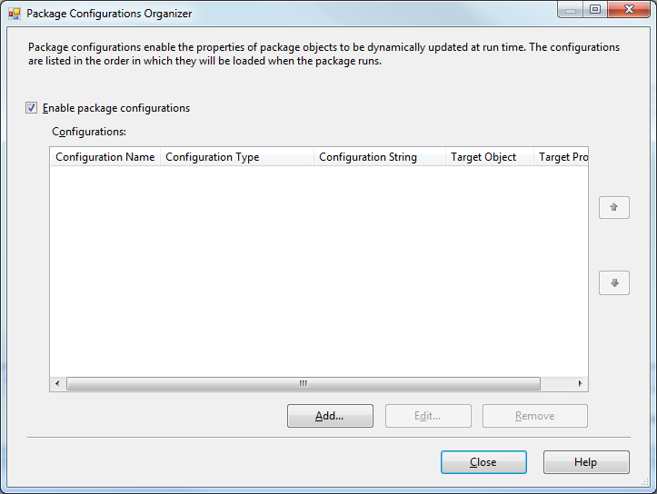 3) On the pop up window, enable package configurations and click Add...